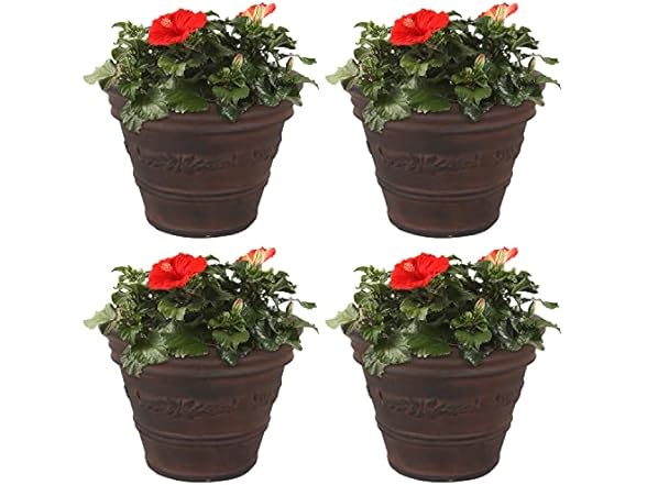 - (1) Sunnydaze 13-Inch Laurel Large Plant Pot, 4 Pack - Rust with Drillable Drainage Holes