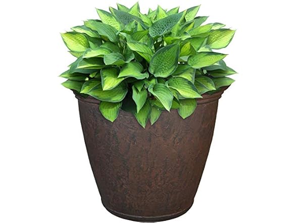- (1) Sunnydaze 15.25-Inch Anjelica Large Plastic Pot Double-Walled with Drillable Drainage Holes - Rust