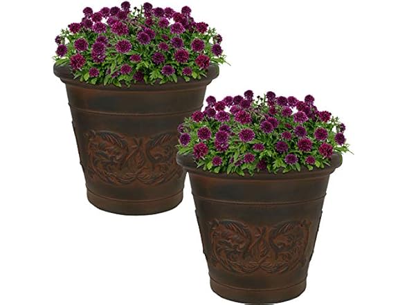 - LIGHTWEIGHT AND DURABLE: This patio planter pot is made from durable, linear low-density polyethylene (polyresin). Polyresin resists cracking from damaging UV rays and cold temperatures. The planter features a hand-painted finish that gives it a rich hue and weathered appearance. The flowerpot is lightweight and easy to carry to any indoor or outdoor space. Due to the manual painting process, some slight variations in color may occur.