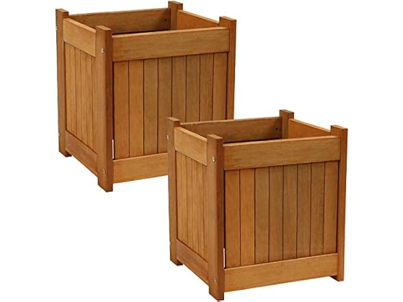 - (1) Sunnydaze Meranti Wood 16-Inch Square Planter Box with Teak Oil Finish - Set of 2