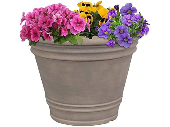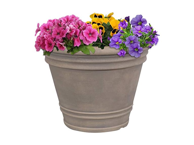 - LIGHTWEIGHT AND DURABLE: This patio planter pot is made from durable, linear low-density polyethylene (polyresin). Polyresin resists cracking from damaging UV rays and cold temperatures. The planter features a hand-painted finish that gives it a rich hue and weathered appearance. The flowerpot is lightweight and easy to carry to any indoor or outdoor space. Due to the manual painting process, some slight variations in color may occur.