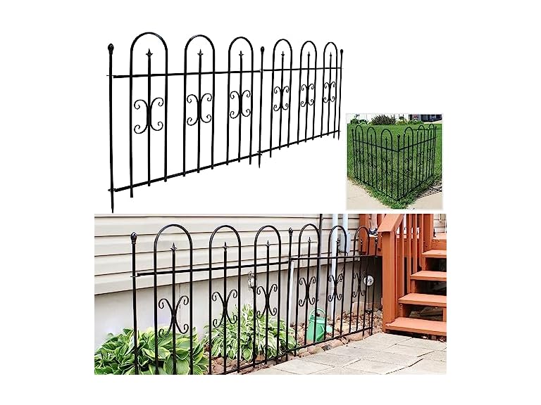 - DURABLE, WEATHER-RESISTANT CONSTRUCTION: Made from iron with a black powder-coated finish, these metal fence panels withstand outdoor elements and maintain their appearance over time.