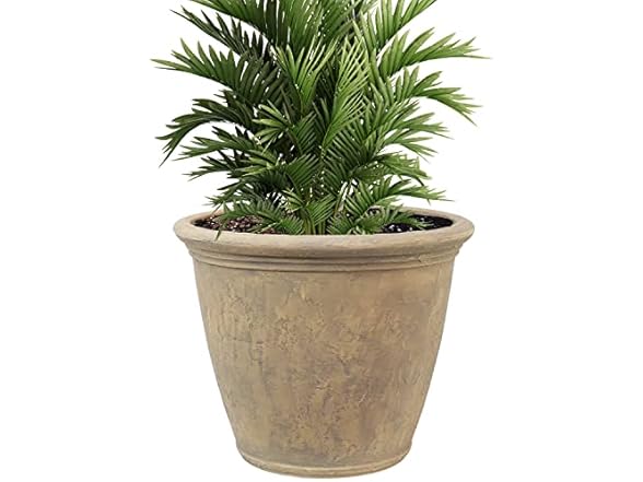 - LIGHTWEIGHT AND DURABLE: This patio planter pot is made from durable, linear low-density polyethylene (polyresin). Polyresin resists cracking from damaging UV rays and cold temperatures. The planter features a hand-painted finish that gives it a rich hue and weathered appearance. The flowerpot is lightweight and easy to carry to any indoor or outdoor space. Due to the manual painting process, some slight variations in color may occur.