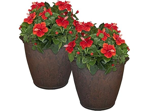 Sunnydaze 24-Inch Anjelica Large Plastic Pot Rust 2pk