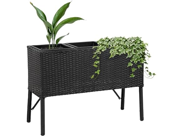 - DURABLE AND ELEGANT WICKER LOOK: This raised flower bed is made of polypropylene with a steel powder-coated tube frame for lasting strength and durability. The classic black wicker design is sure to complement any style.
