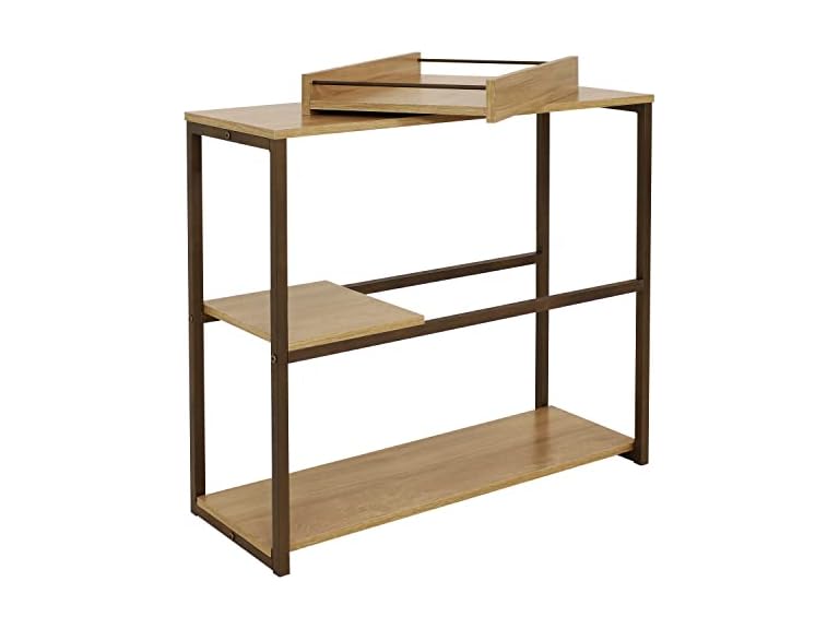 - Industrial-style design: This sturdy front entrance table features shelves, a tabletop, and a removable tray constructed of stain- and scratch-resistant, medium-density particleboard (MDP). The tray has steel handles. The table frame is made from powder-coated steel for lasting strength and style.