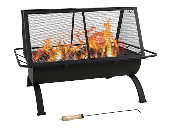 - FULL GRILL SET INCLUDED: This heavy-duty fire pit includes a durable rectangular chrome cooking grate for serving food, a spark screen for added safety from flying sparks, a poker tool to control the flame, and a weather-resistant cover.