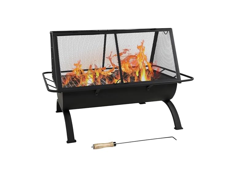 - SERVE UP DELICIOUS FOOD: This rectangle fire pit works well for cookouts on the lawn. It has a hinged door on the mesh screen to easily access burning logs, the grilling grate, or add firewood to the flame. The tubular metal rail encircles the brazier, making it easily portable to bring along on camping trips.