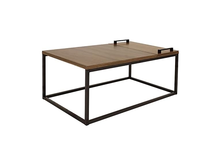 - Industrial-style design: This rustic coffee table features a stain- and scratch-resistant tabletop and removable tray constructed of medium-density particleboard to resist daily wear and tear. The table frame and legs are made of powder-coated steel.