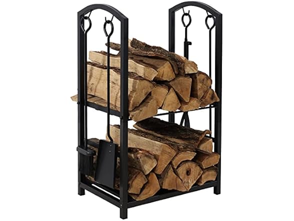 - VERSATILE DESIGN: This wood rack with fireplace tools can be used indoors next to the fireplace or outdoors near the fire pit, keeping firewood conveniently located for relaxing nights by the fire anywhere.