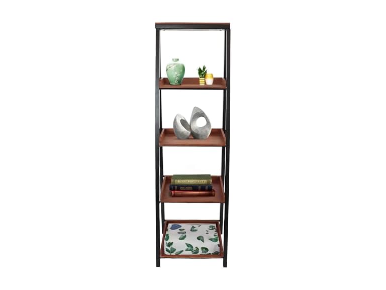 - Plenty of space for books, collectibles, and more: This versatile industrial ladder shelf can be used in a variety of rooms including the office, living room, or bedroom. With four tiers and a unique leaning design, this contemporary piece of furniture is wonderful for displaying books, collectibles, picture frames, and other knickknacks.