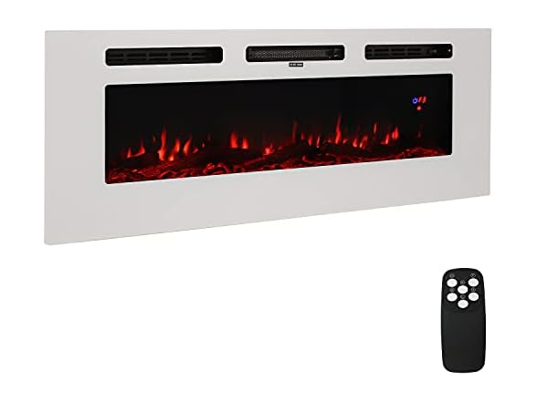 - (1) Sunnydaze White Indoor Electric Fireplace Insert - Wall-Mounted Electric Fireplace Heater with 3 Flame Colors - 50-Inch