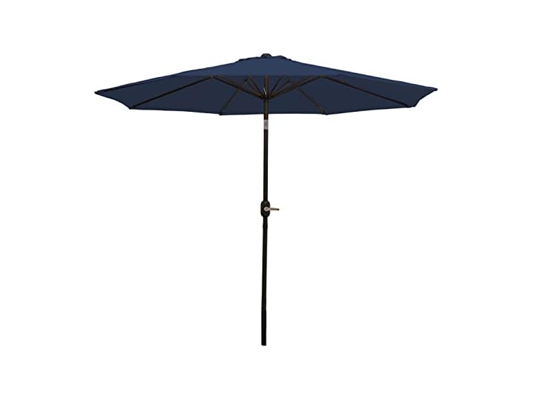 - (1) Sunnydaze 9-Foot Patio Umbrella - Push-Button Tilt and Crank Handle - Aluminum Pole and Polyester Shade Canopy - Navy Blue