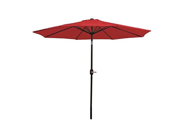 A patio umbrella with tilt and crank functionality is the answer to achieving shade on any patio space. Easily control exposure to the sun and remain comfortable outdoors while sitting under this umbrella with friends and family. Featuring a push-button tilt function, easily maneuver the umbrella into the desired angle for maximum comfort. Plus, the crank makes it easy to open or close the umbrella when it gets windy or for easy storage when the summer months are over. The large 9' umbrella diameter makes it a great size for any 42" - 54" outdoor dining table and chairs. With a standard 1.5" opening base, use the umbrella with any favorite outdoor seating set! In addition, the umbrella is engineered to last with a black powder-coated aluminum pole for resistance to rust, steel ribs for maximum support, and a 100% polyester fabric canopy for extra durability. Available in multiple colors, stay cool on your patio in style!