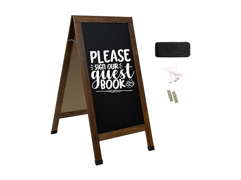 - TOOLS FOR CREATIVITY: The sandwich board sign includes 4 traditional white chalk pieces, an eraser, and 2 magnetic clips, providing everything needed to craft elegant messages, drawings, or designs for any occasion.