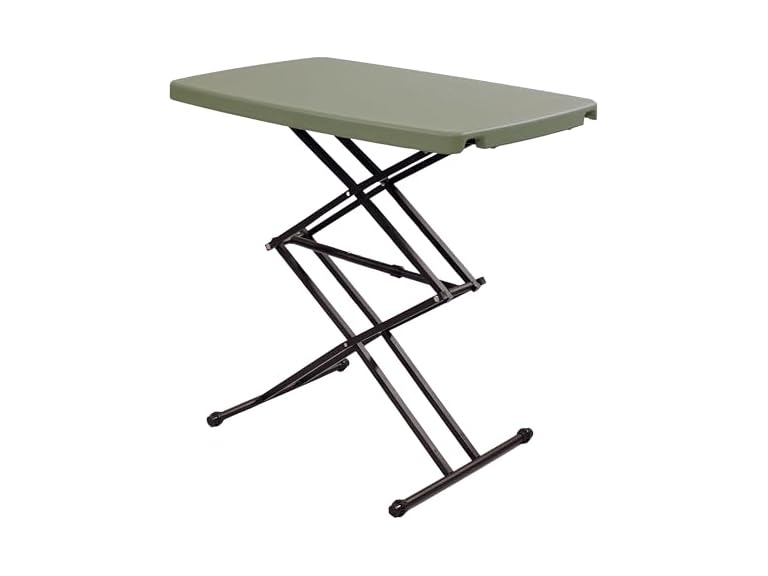 - DESIGNED TO LAST: Use this portable tray table in the kitchen or on the patio. Made with durable, powder-coated iron legs and a polypropylene tabletop, the table is sure to withstand the elements.