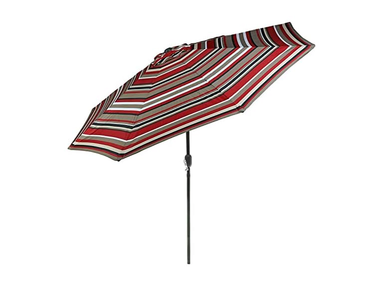 - KEEP THE SUN OUT OF YOUR EYES: This yard umbrella features a push-button tilt to better control the amount of shade provided. It also has an easy crank open and closure as well as a built-in vent in the canopy for more stability in the wind and cooler shade in the heat.
