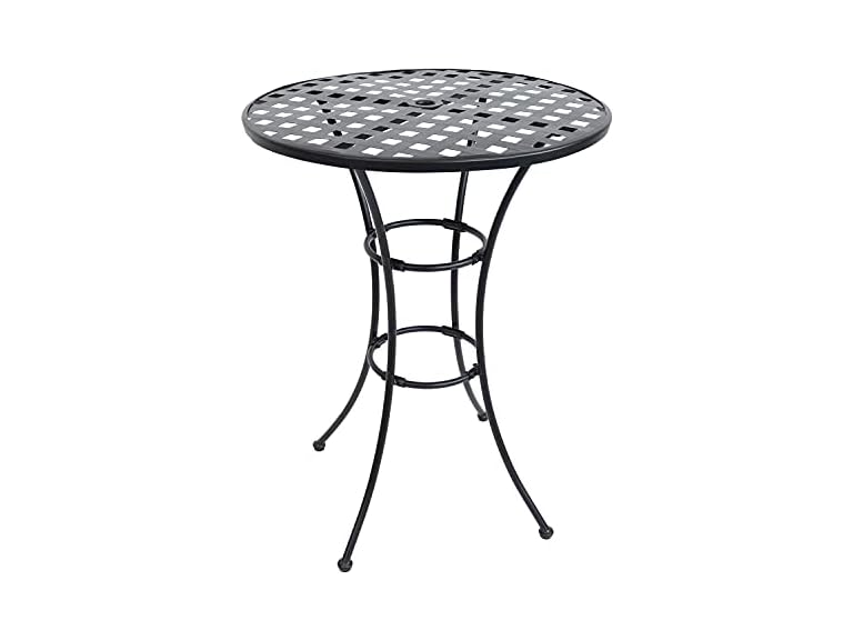 - TALL DESIGN: The bar-height table measures 30" in diameter x 39.5" H, weighs 19.6 lbs, and has a weight capacity of 150 lbs. The umbrella hole in the center measures 1.5" in diameter. This stylish patio table is a wonderful height to complement any outdoor patio or tiki bar.