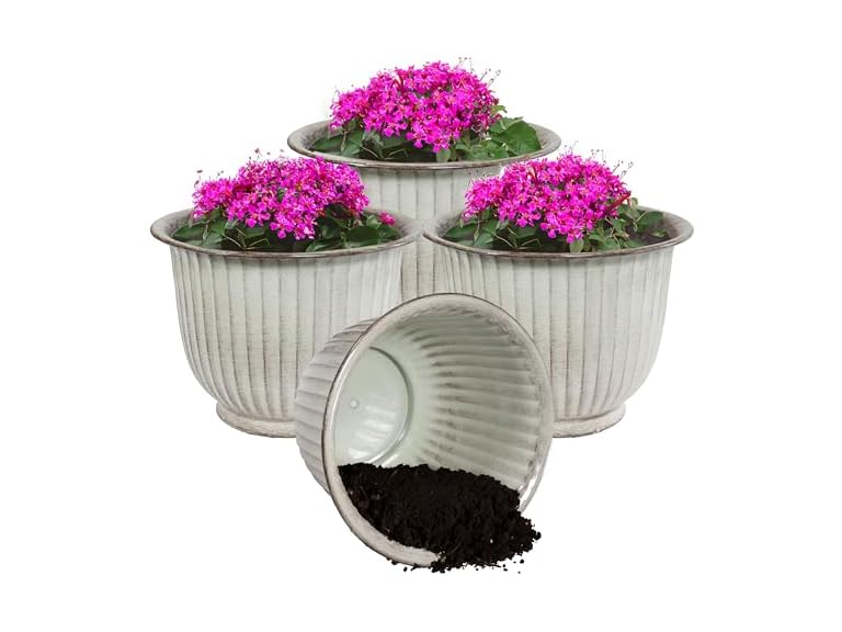 - BEAUTIFUL MODERN ACCENT: These flower pots with drainage holes for indoor plants are designed to last and are made from iron. They also feature a beautiful UV-protected and rust-resistant finish.