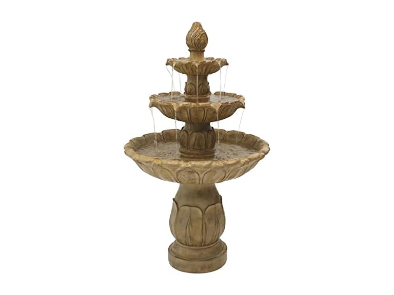 - SOOTHING AMBIANCE: The cascading water from tier to tier on this decorative water fountain produces calming sounds that promote a peaceful outdoor environment and mask unwanted background noise. The neutral color and tulip-inspired design complement a wide range of outdoor styles and landscapes, making this patio water fountain a great centerpiece for any patio, landscape, or backyard.