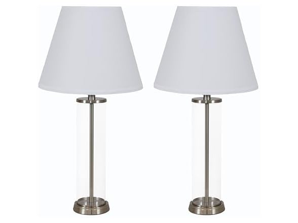 - (1) Sunnydaze Cylinder Glass Table Lamp Set of 2 with Shade - 27.75" H - Indoor Modern Accent Lamps with Clear Base - Plug-in Electric