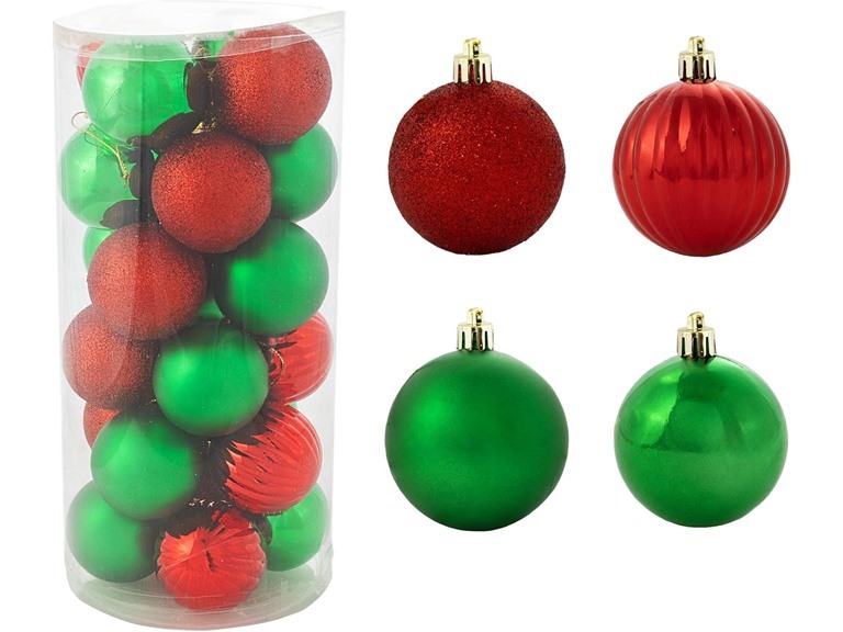 - (1) Sunnydaze Decor Merry Medley Plastic 24-Piece Ornament Set - Red and Green
