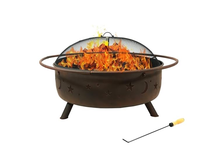 - LONG LASTING AND HEAVY DUTY: This bonfire fire pit is made from durable steel and is finished with rustic patina-colored, high-temperature paint for heat and rust resistance. The portable function allows the outdoor fireplace for patio to be moved anywhere and has decorative star and moon cutouts that complement any outside style.