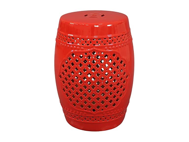 - ELEGANT DESIGN: This decorative drum garden stool is made of ceramic and features a unique lattice design and a vibrant glazed finish to add modern style to any location. It has 3 attached foam feet to help protect the floor.