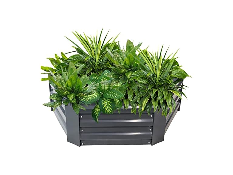 - (1) Sunnydaze 11.75" H Raised Metal Garden Bed - Galvanized Raised Garden Bed Outdoor for Vegetables and Flowers - Dark Gray - Hexagon
