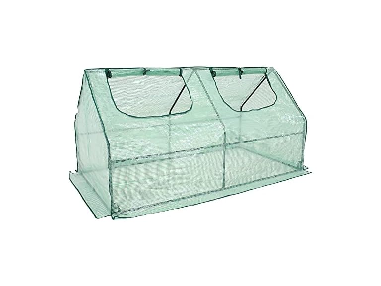 - PORTABLE MINI GREENHOUSE: Move this outdoor greenhouse across the yard, patio, or garden to ensure plants receive the best sunlight to grow. This mini cloche greenhouse measures 71" W x 35" D x 35.5" H and weighs 6.2 lbs. The doors offer a 24" W x 15" H opening into the growing area.