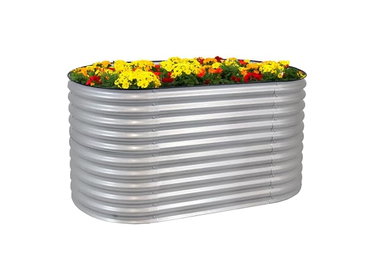 - BUILT TO LAST: Constructed from 0.6mm thick galvalume steel, this raised flower bed offers long-term durability with excellent resistance to rust, corrosion, and weathering. The sturdy design supports heavy soil and plant loads without bending or buckling. Two included rubber edge trims provide a smooth, protective finish for added safety during gardening tasks.