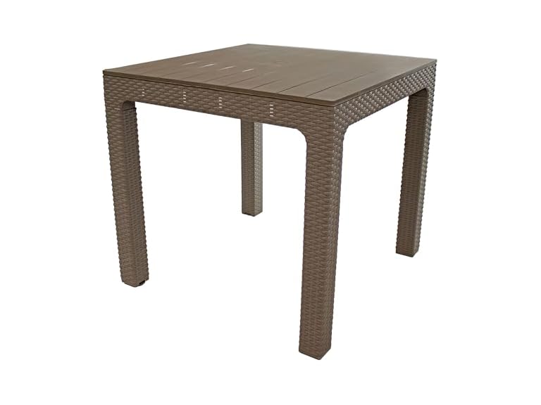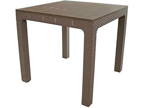 - SPACIOUS SEATING: This plastic outdoor dining table provides enough space for 4 people to enjoy a meal or conversation. The table measures 31.5" W x 31.5" D x 29.5" H, weighs 13.8 lbs, and has a 110 lb weight capacity. The tabletop is 3.5" thick.