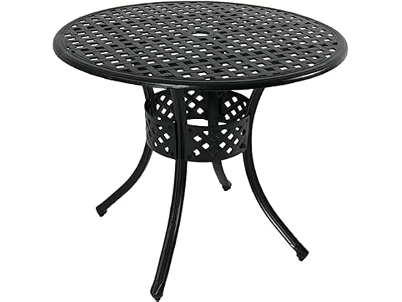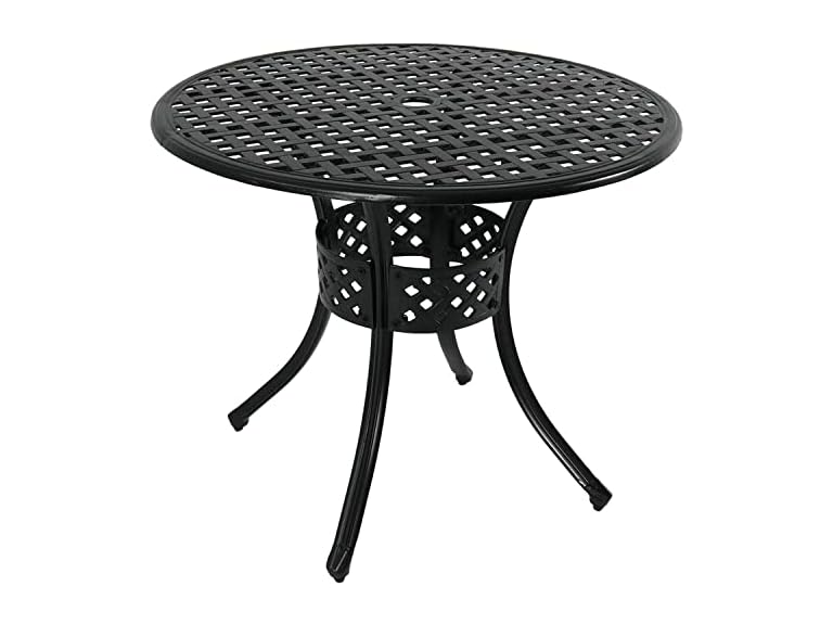 - DURABLE CONSTRUCTION: Made from heavy-duty cast aluminum metal material with a powder-coated finish, this table can withstand the harshest weather conditions.