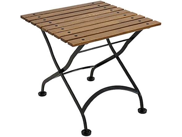 - GREAT LITTLE TABLE: This side table measures 19.75" W x 19.75" D x 18.5" H and weighs 15.6 lbs. It has a weight capacity of 200 lbs. This wooden folding table is the right accent for the patio, deck, camp site or living room. Place it next to a favorite chair and use it to hold a book, drink or a lamp.