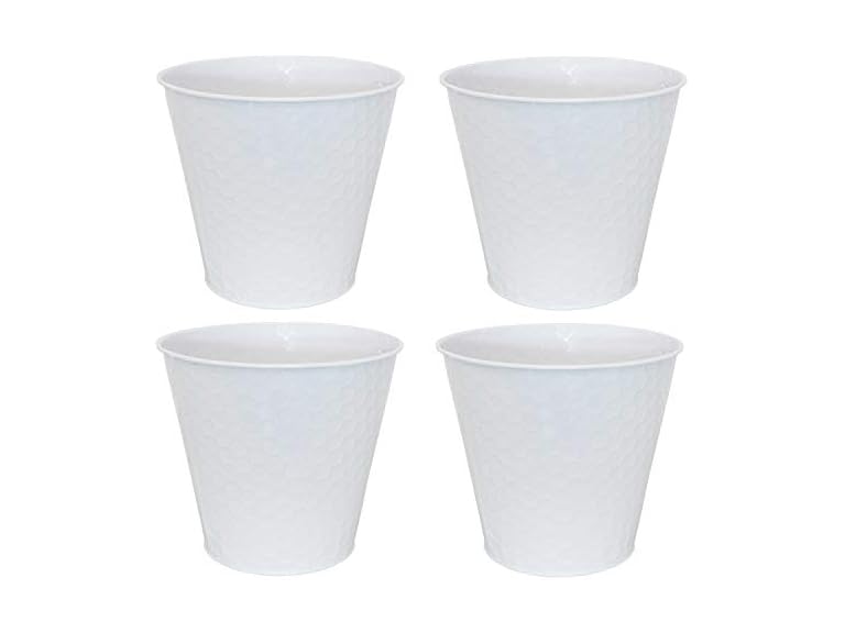 - (1) Sunnydaze Galvanized Steel Buckets with Hexagon Pattern - Set of 4 - White - Small Colored Metal Decorative Pails - Indoor Use - Perfect for Storage, Decoration, Gardening and Parties