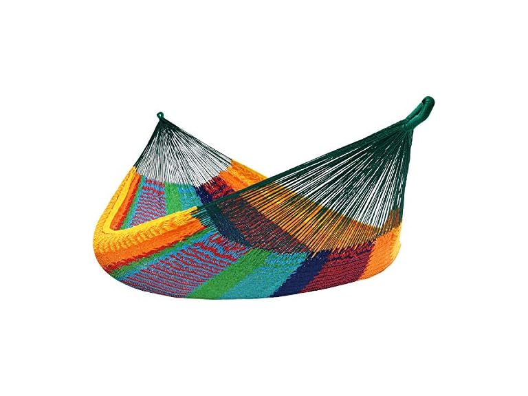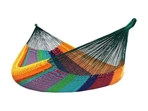 - VIBRANT AND DURABLE FOR ANY SETTING: Designed for both indoor and outdoor use, this 2-person hammock brings color and comfort to patios, decks, balconies, or backyards. The unique handwoven patterns vary with each hammock, adding authentic style and personality to any space.