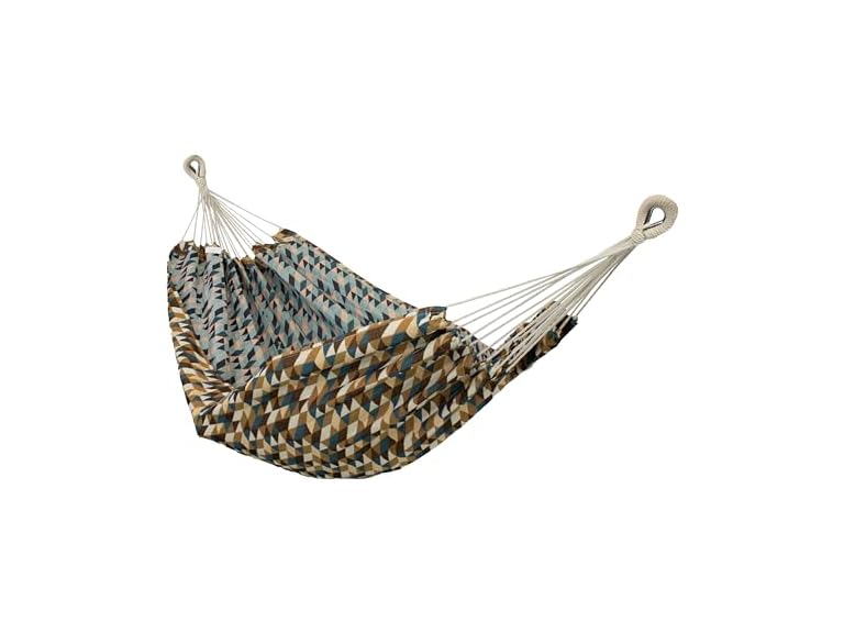 - LIGHTWEIGHT AND PORTABLE: This jacquard fabric hammock is lightweight and folds, making it easy to take on the go. Take the hammock along on a hike or camping trip, or set it up in the backyard between 2 trees or on a hammock stand (not included) for a quick nap or lounging session.