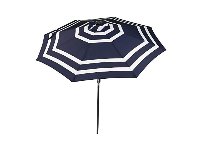 Sunnydaze Navy Blue Stripe 9' Solar Patio Umbrella