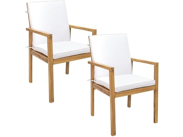 - (1) Sunnydaze Outdoor Dining Chairs Set of 2 - Rodanthe Patio Chairs with Cushions - Acacia Wood Outdoor Seating - Patio Seating - Natural Wood