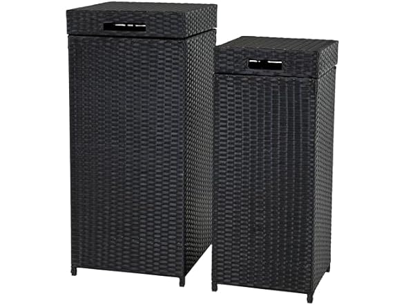 - VERSATILE STORAGE FOR STYLISH, ORGANIZED SPACES: Designed for homeowners, renters, and outdoor entertainers, this matching set complements a range of settings including patios, laundry rooms, entryways, and kitchens. Great for those who value clutter-free living, the containers pair well with standard trash bags, laundry liners, or storage baskets, making them a great fit for tidy households, minimalist lifestyles, or outdoor hosting setups.