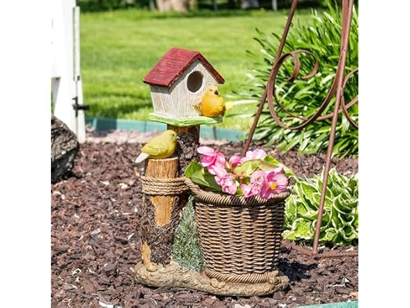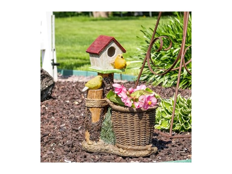 Sunnydaze Polyresin Bird House Outdoor Statue Planter