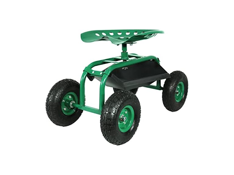 - BUILT TO LAST: Made from heavy-duty powder-coated steel with vibrant color, this cart is built to last. Solid steel axles and heavy-duty pneumatic wheels ensure that the garden chair with wheels will last through many years of gardening and landscaping.