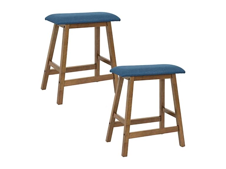 - Durable construction: The frames of these backless counter stools are made from solid rubberwood. Rubberwood is a durable hardwood that requires little maintenance. Each stool features a 2" H soft cushion for extra comfort. The cushion is made with a polyurethane foam pad and a polyester cover.