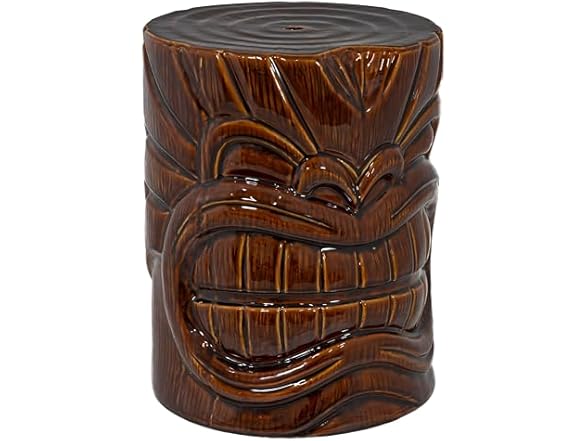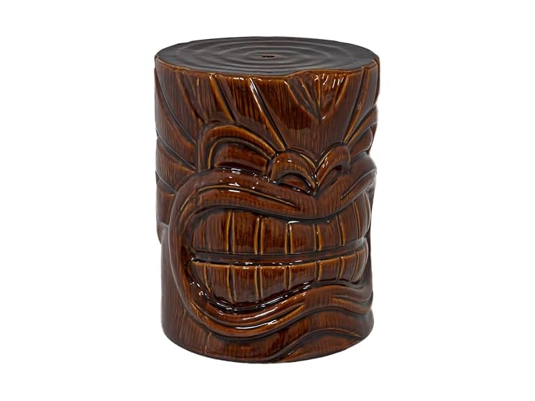 - BUILT TO LAST: This glazed ceramic side table features a unique tiki design and a wood-look brown finish. It has 3 attached foam feet to help protect the floor.