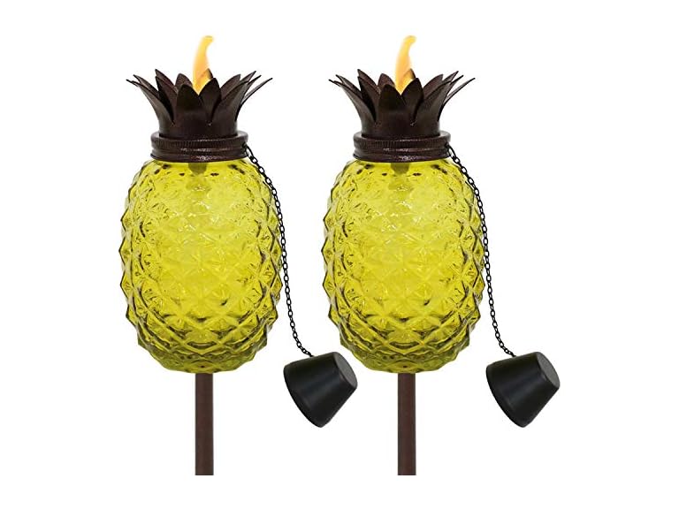 - MADE FROM QUALITY MATERIALS: The backyard torches feature a beautifully sculpted glass pineapple design that will add some tropical flair to any patio, deck or backyard; the hollow poles are made from steel for strength and durability.