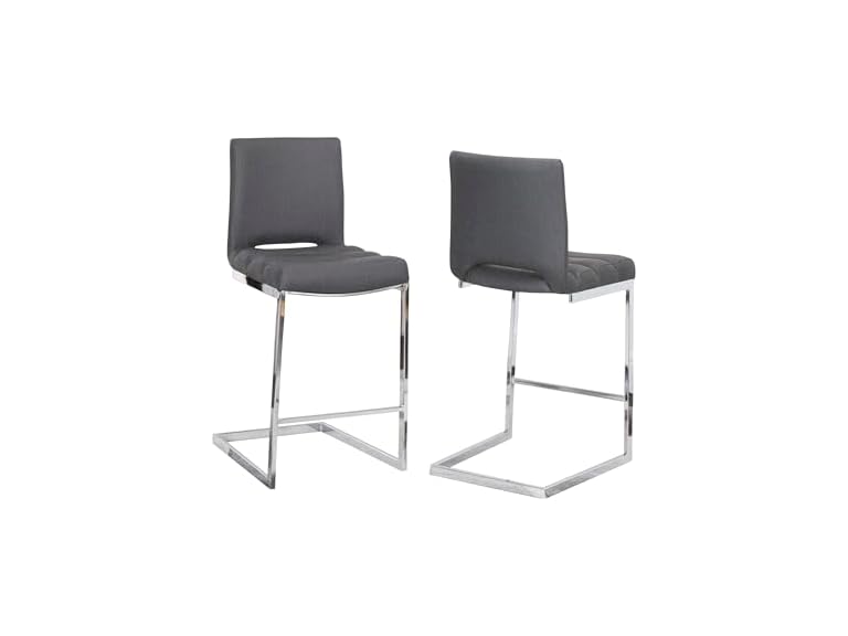 - (1) Sunset Trading Delta 24" Upholstered Barstools | Set of 2 Counter Height Stools | S-Shaped Chrome Cantilever Base | Charcoal Gray Padded Upholstery | Dining Room, Home Bar, Pub, Kitchen Island Seating