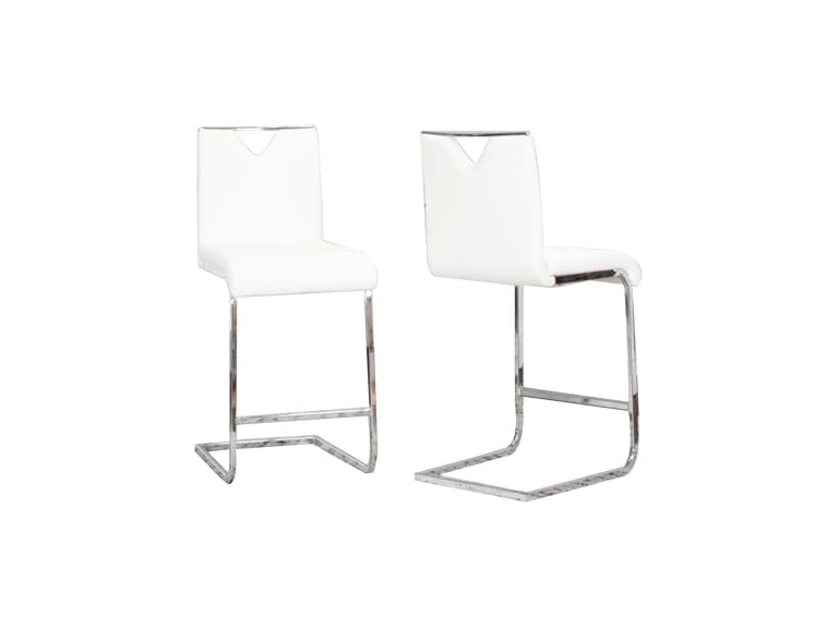 - AMAZING WHITE FAUX LEATHER HOME BAR CHAIRS W OPEN CHROME BACK HANDLE OPENING – Covered in a breathable fade resistant soft upholstery that has the feel of real leather, yet withstands daily wear and is easy to clean, ensuring comfort and practicality