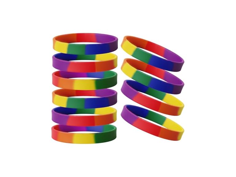 - (1) SuntonSports 10 PCS Rainbow Rubber Bracelets Bulk Silicone Wristbands Stretch Unisex Wristbands for Men Women Teens
