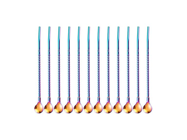 - (1) Sunwinc 50Pcs Reusable Metal Spoon Straws in Bulk For Wholesale,8.5'' Stainless Steel Drinking Rainbow Straws Spoon Yerba Mate Bombilla Straws for Cocktail,Iced Coffee,Milkshake,Smoothies (Rainbow-50Pack)