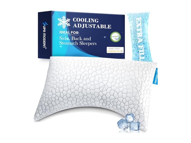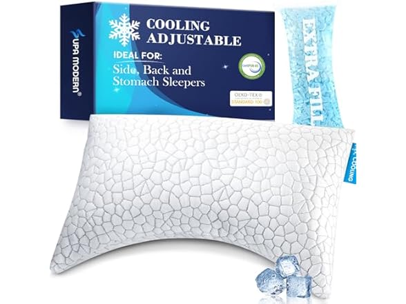 - 【Adjustable Pillow with Extra Loft Customize Your Comfort】 Engineered for premier sleep, this pillow relieves neck pain with customizable support. Adjust height firmness by adding removing shredded memory foam perfect for all sleep positions. Cooling design and ergonomic contours ensure pressure free, refreshing rest.